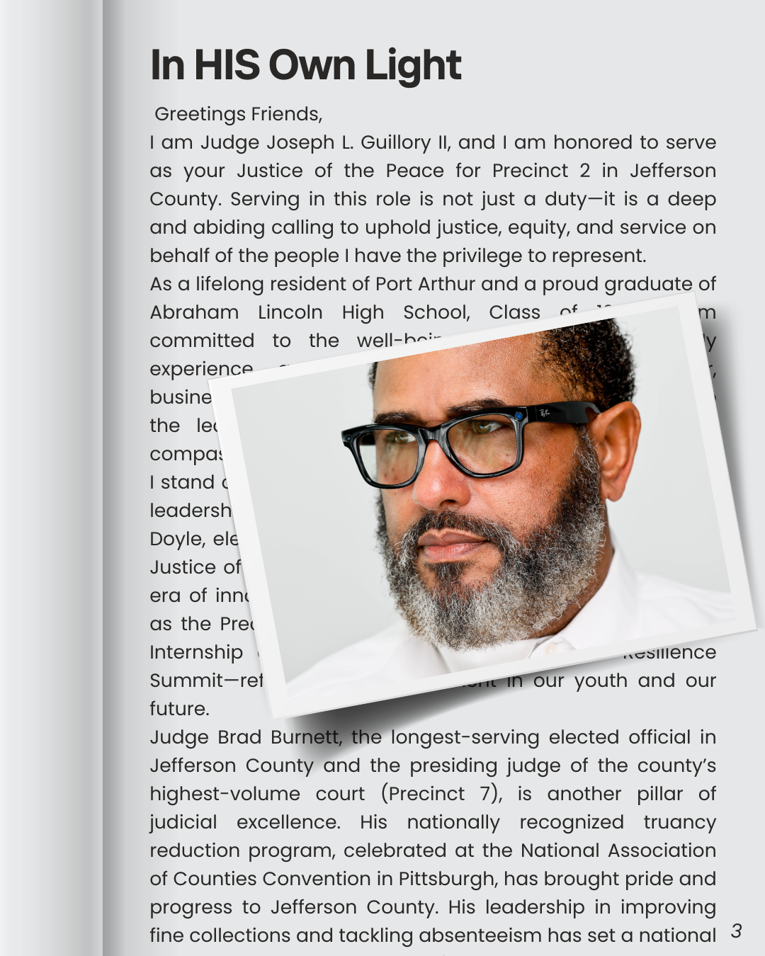 I am Judge Joseph L. Guillory II, and I am honored to serve as your Justice of the Peace for Precinct 2 in Jefferson County. Serving in this role is not just a duty—it is a deep and abiding calling to uphold justice, equity, and service on behalf of the people I have the privilege to represent.